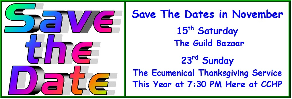 Sunday, November 23rd at 7:30 PM the Annual Ecumenical Thanksgiving Worship Service will be held Here at CCHP