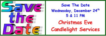 Candlelight Services 5 & 11 PM 5 PM — New Time for the Family Worship Service