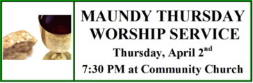 Maundy Thursday Worship April 2nd 7:30 PM