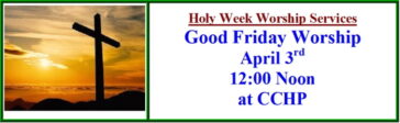 Friday April 18th – Good Friday Worship 12:00 Noon at CCHP